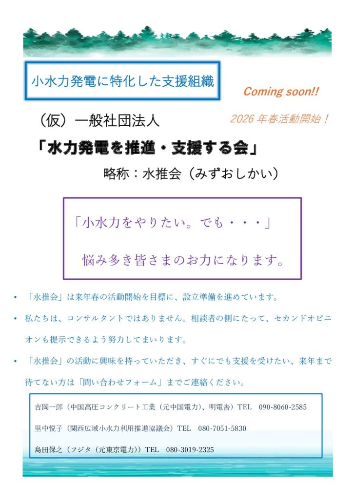 - 「水推会」は来年春の活動開始を目標に、設立準備を進めています。