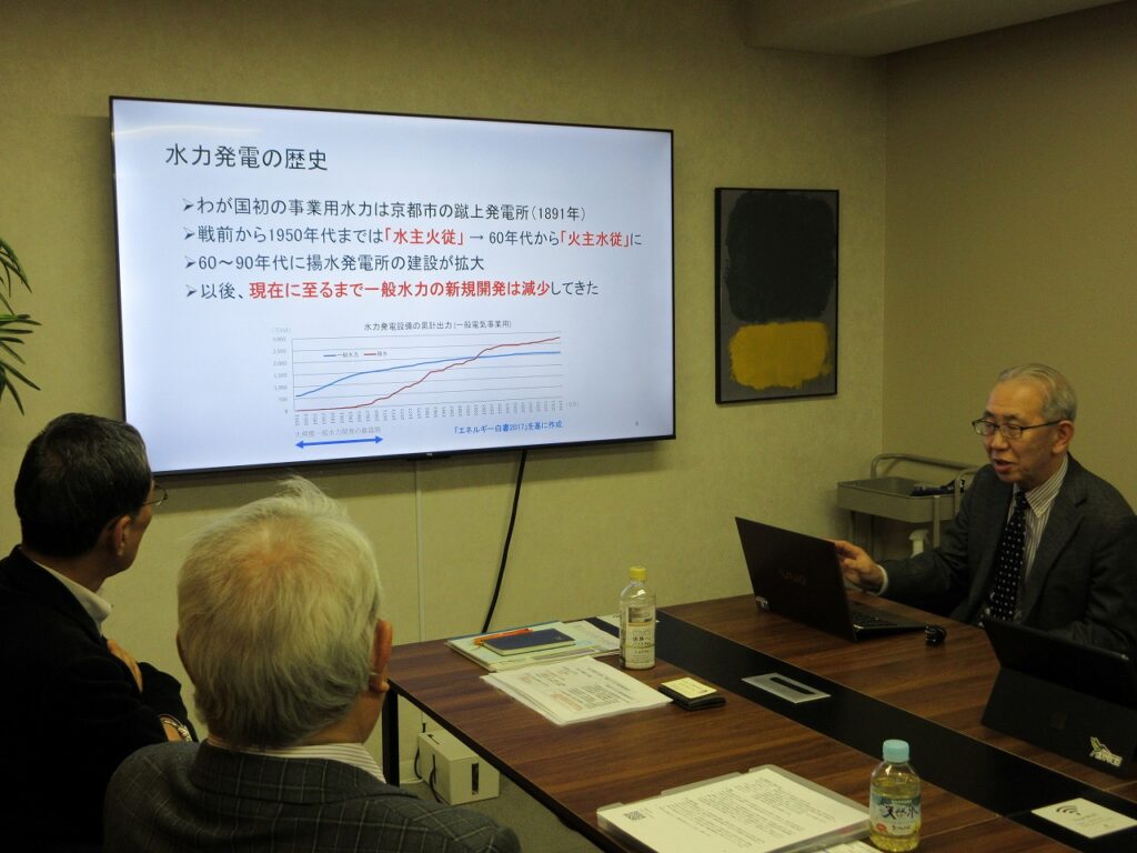 同協会では、水循環の健全化について議論するための勉強会を進めており、今回はより幅広い見地から水循環について考えたいとの事で、水推会に対して小水力発電を通した水循環について考える講演会開催の要請がありました。